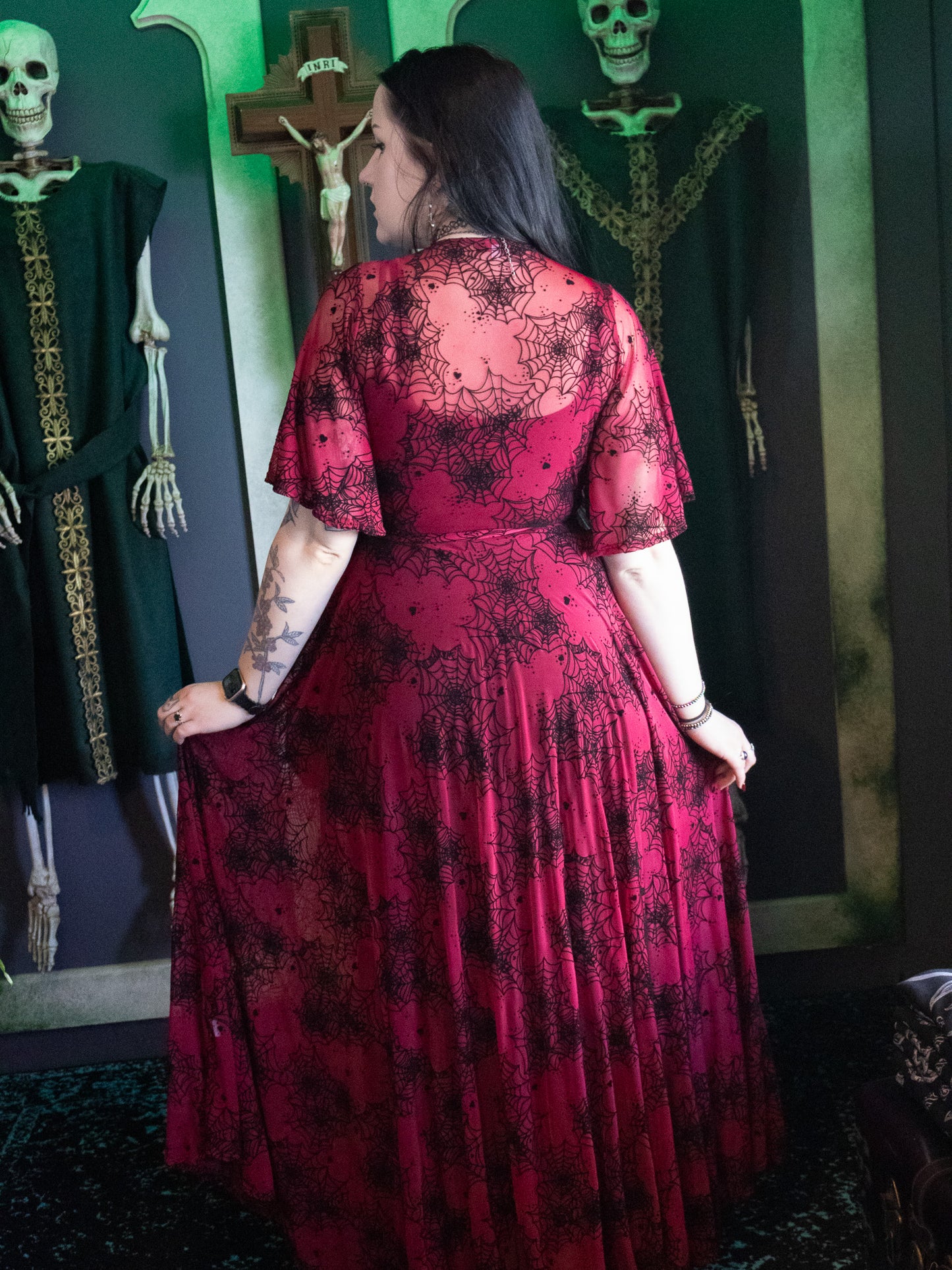 Oxblood Lydia Spiderweb Mesh Wrap Dress (NO RESTOCKS!)