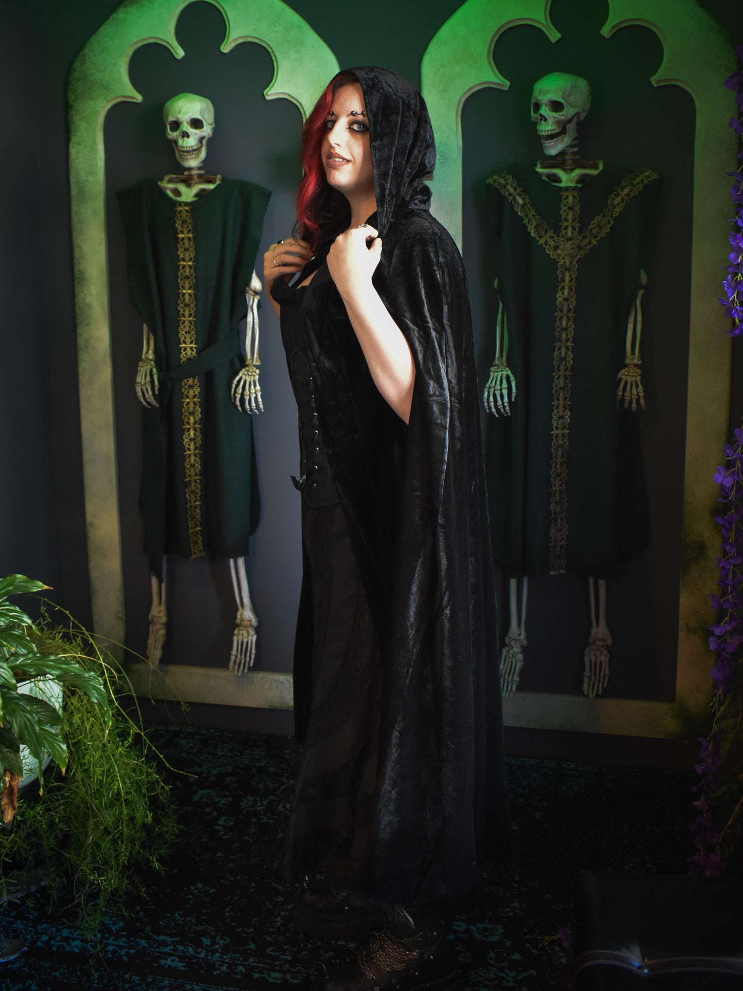 Bewitching Black Velvet Full Length Cape