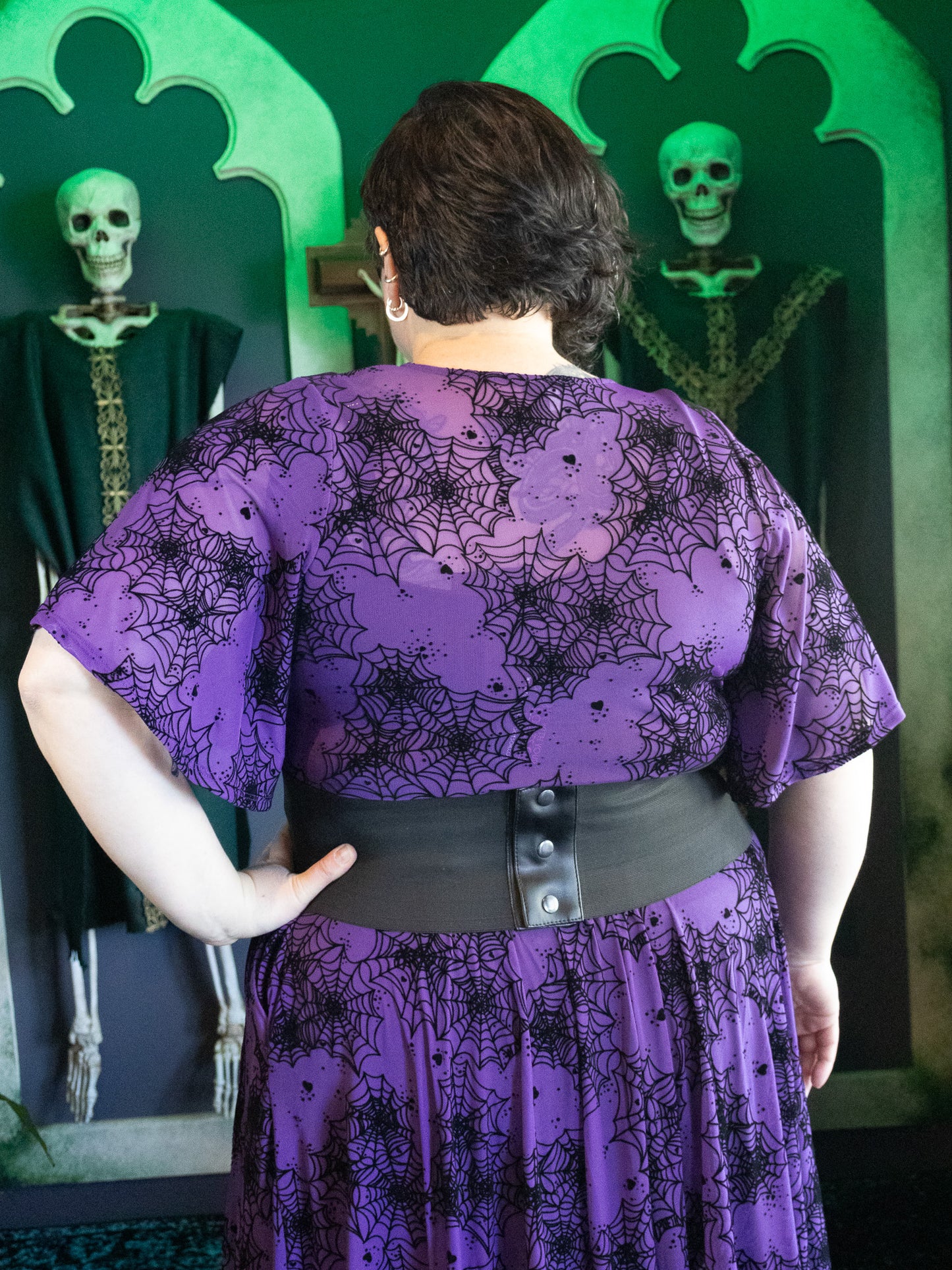 Part corset, part stretch belt! Velvet panels on the front, elastic on the back. Incredibly comfortable and flattering. The triple snap closure fastens it very securely.
